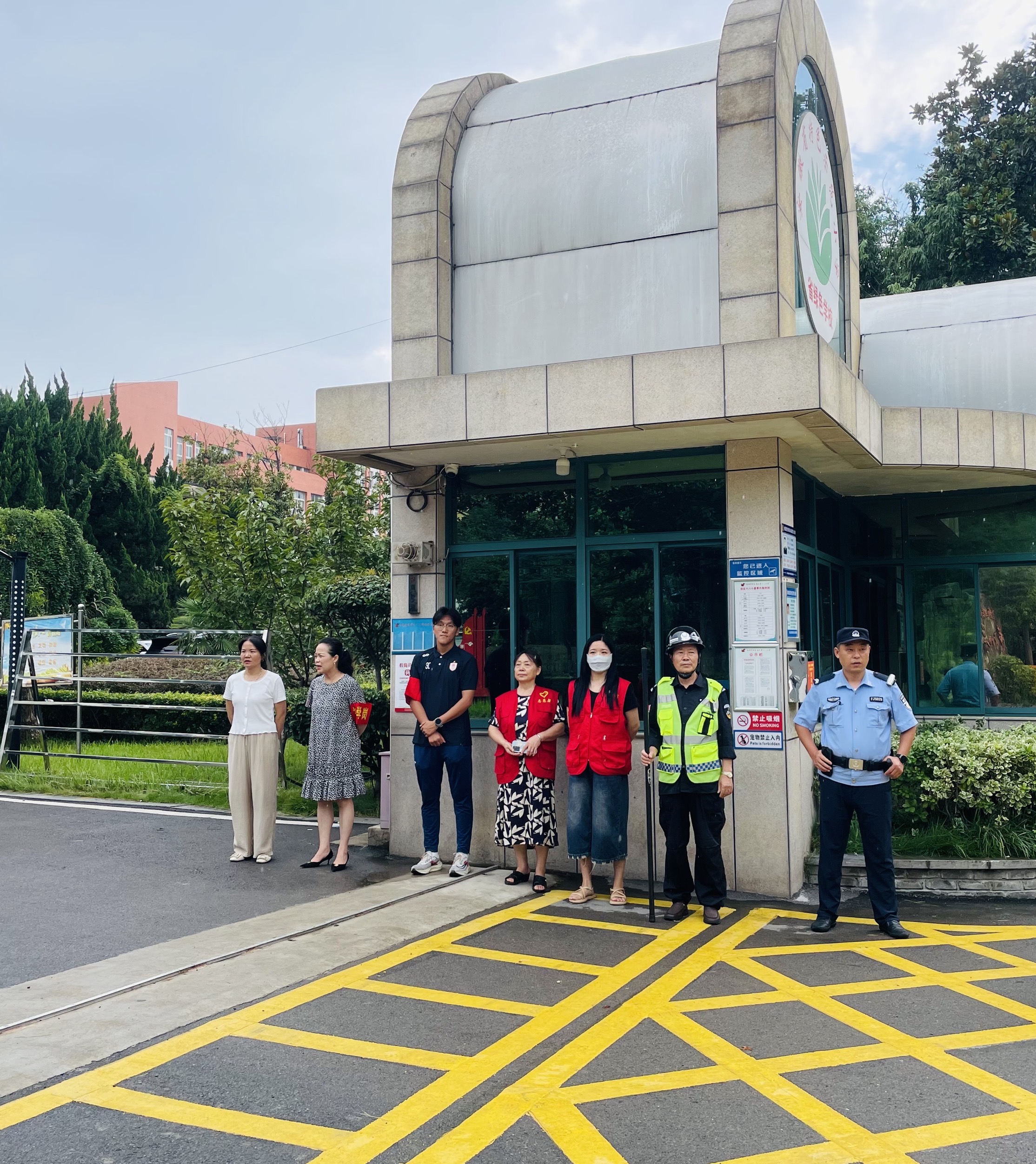“护学岗”队伍早早到校,戴着袖章,穿着马甲,及时疏导路面交通,指引家长有序停车,护送学生安全过公路,保障学生人身安全,确保校园周边道路交通安全、畅通。